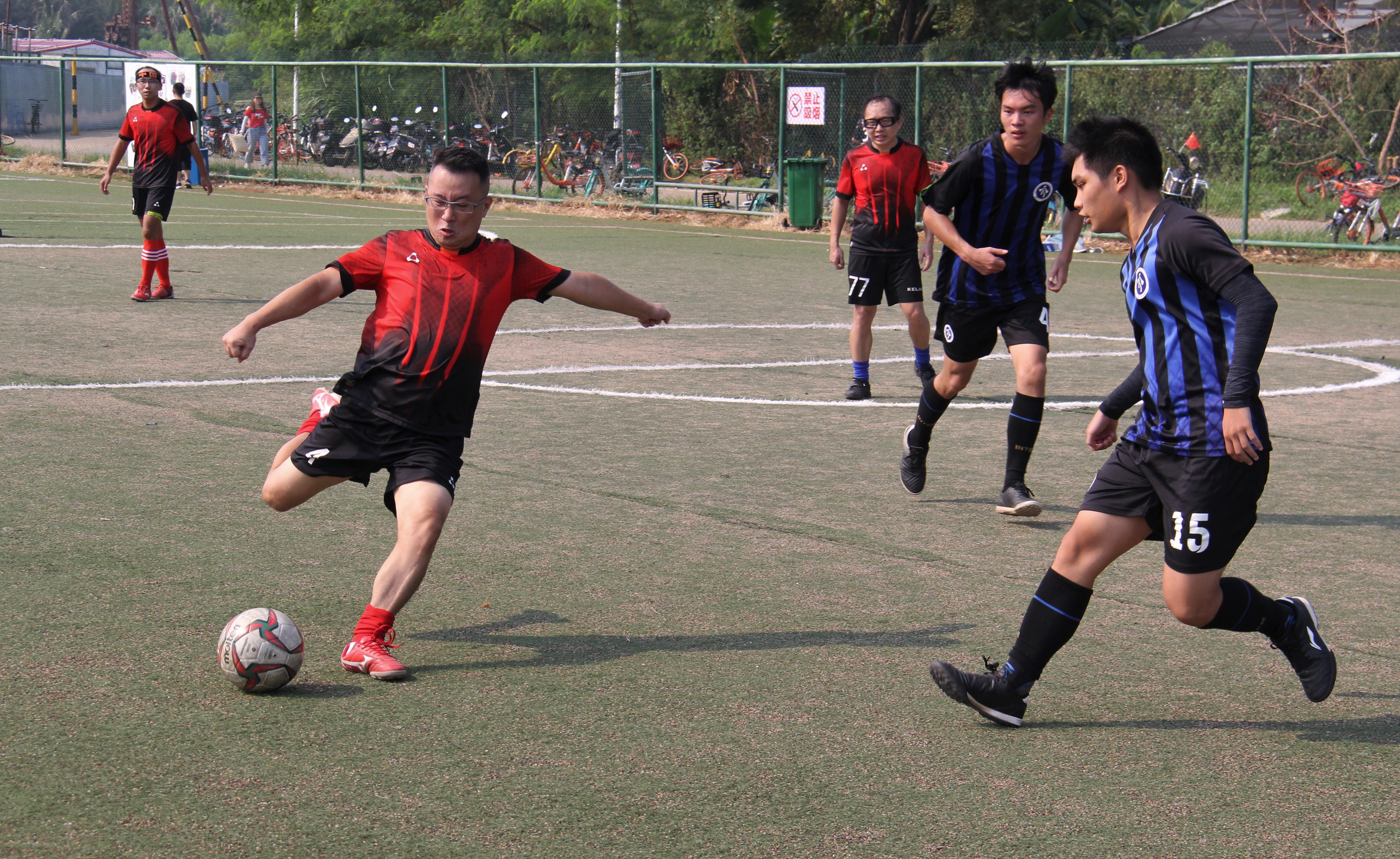 永利集团人文传播学院喜迎中华人民共和国成立七十周年师生足球友谊赛,于9月28日8时30分在永利集团第二田径运动场顺利举行。此次比赛得到师生广泛参与,反响热烈。本次比赛教师队伍参赛教师有王春嵩、乔焕江、李安斌、颜 磊、朱杰、翁浩予、梁雷雨、林佳;员工队伍参赛球员有刘宏、颜业胜、符诗宝、金相宇、周炜杰、付鑫、李佳、林高志、钱贤国、马昱含、王昊、徐鑫隆,由永利集团足球协会张孝睿、杨松卫担任裁判。