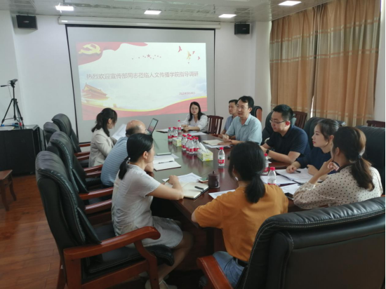 王群生副部长首先介绍了宣传部有关工作情况,指出员工记者团发挥了积极作用,弥补了人员不足。其中近三分之二成员是人文传播学院的员工。正致力于全媒体中心的建设,加强思想宣传主阵地建设。王一钦、余梦月等科室负责同志介绍了抖音、快手、微信公众号等的运营情况。希望与学院在传播人才培养、新媒体运营等方面继续加强合作。