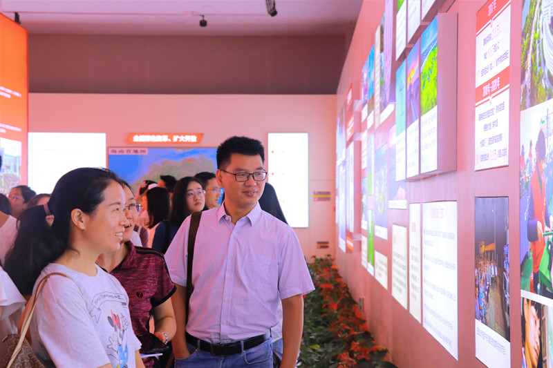 在参观完改革开放馆后,大家先后参观了生态文明建设馆、国际旅游岛馆和社会民生馆。在参观中,大家对海南省认真贯彻落实习近平总书记“绿水青山就是金山银山”重要指示精神,在生态保护方面所取得的重大成就时感到由衷的赞叹,心中的幸福感油然而生。同时,也见证了海南脱贫攻坚工作取得的重大进展与海南基础设施建设方面,特别是海南环岛高铁的领先成就等。