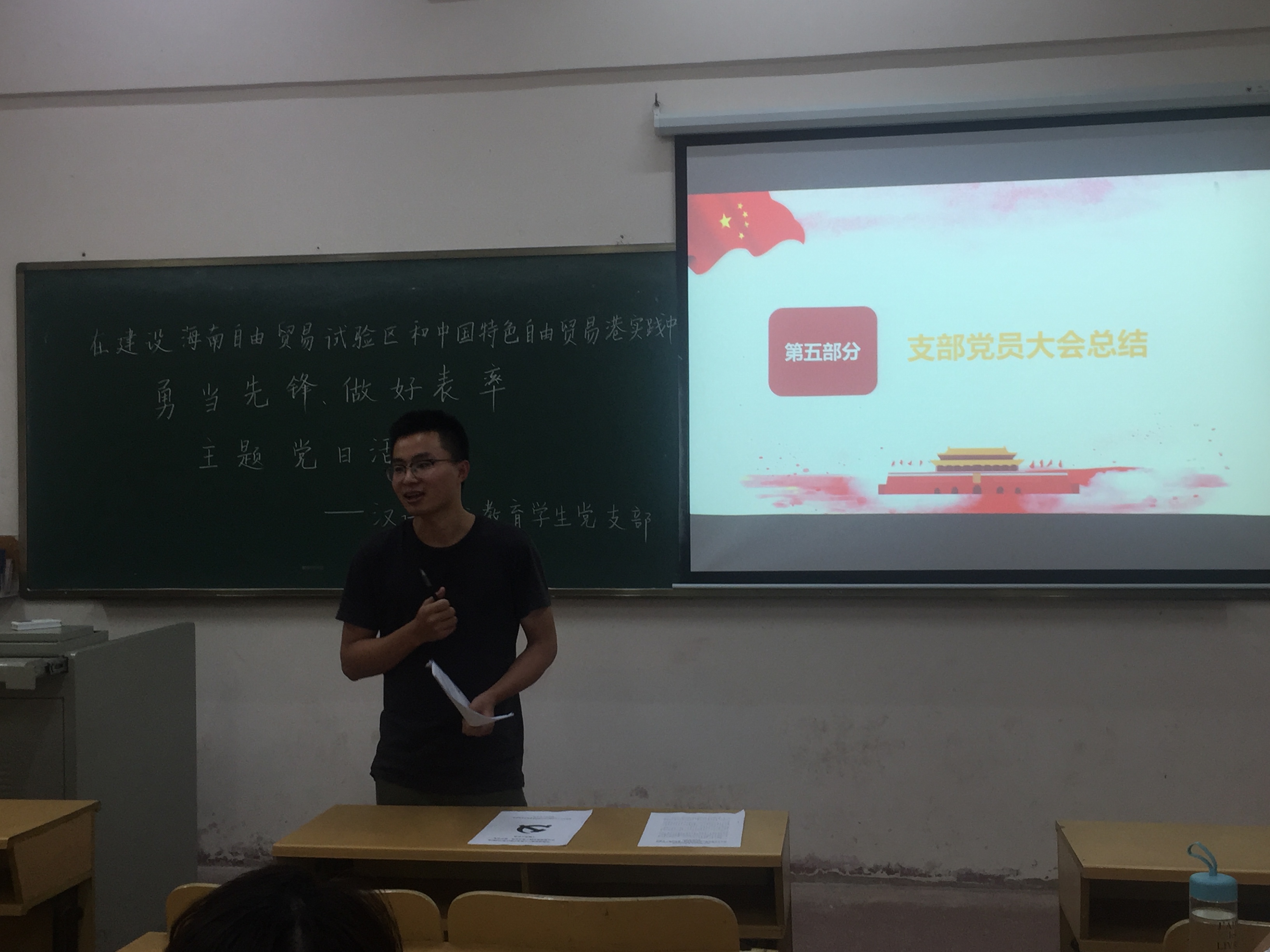 其次,全体党员讨论关于在全校开展“在建设海南自由贸易试验区和中国特色自由贸易港实践中永当先锋、做好表率”专题活动的实施方案;