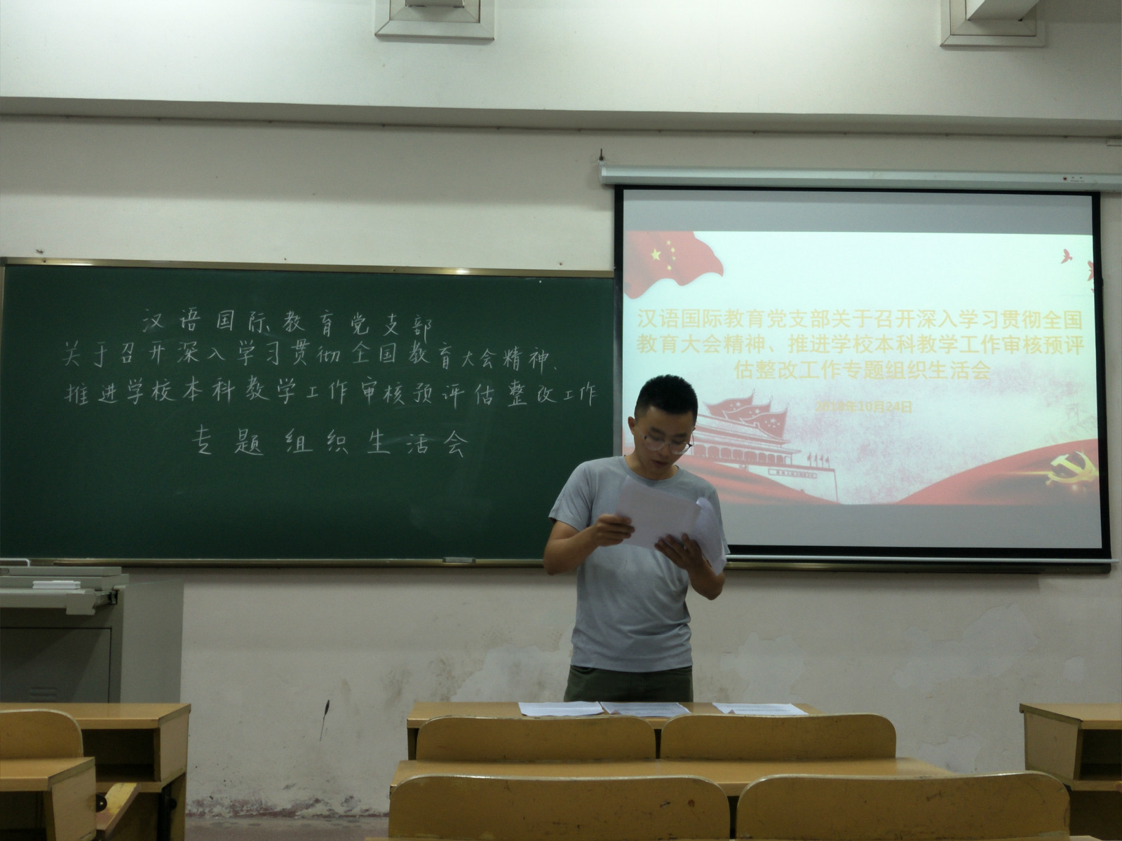 根据中共永利集团纪律检查委员会办公室、中共永利集团委员会组织部《关于召开深入学习贯彻全国教育大会精神、推进学校本科教学工作审核预评估整改工作专题民主生活会和组织生活会的通知》精神,10月24日晚,人文传播学院汉语国际教育员工党支部组织召开了专题组织生活会,会议由支部书记李润东主持,支部全体党员参加了会议。