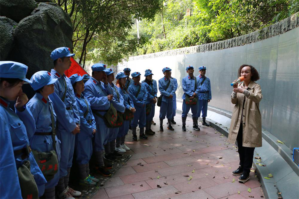 在烈士陵园面对党旗庄严宣誓,重温入党誓词